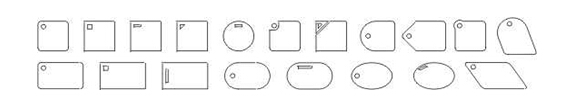 薄膜開關(guān)按鍵的各種形狀:鍵體外形與大小的設(shè)計,應(yīng)從整個面板的大小及按鍵數(shù)量的多少來考慮。按鍵太小,操作比較費力;按鍵太大,則影響美觀,且不宜按準(zhǔn)有效操作區(qū)域。另外,如果按鍵凸起,應(yīng)選擇帶圓角的矩形、圓形、橢圓、長圓等外形比較圓滑的形狀;按鍵不凸起時,則可選擇任意形狀,以略大于后部電路觸點為好。在鍵體上設(shè)置指示窗,一般情況下,以左上角為好。指示窗的形狀雖可自由設(shè)計,但應(yīng)注意盡量與鍵體的外形輪廓相適應(yīng),譬如,帶圓角的鍵體,宜采用圓形指示窗,方角鍵體宜采用方形或長方形指示窗,以增進外觀的協(xié)調(diào)。在同一面板上各單元內(nèi)的指示窗位置及形狀應(yīng)趨于一致。常見鍵體外形與指示窗位置、形狀見下圖